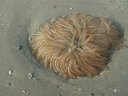Mark de Hek uit Rotterdam vond op 20 oktober tussen paal 4 en 7 een prachtige, gave klep van de Noordse cirkelschelp. Deze zeer zeldzame schelp werd slechts enkele malen eerder op Schiermonnikoog aangetroffen. De schelp is ca. 3 cm in doorsnee en ziet er fossiel uit. Mogelijk stamt de schelp uit het Eemien, de periode tussen de laatste twee ijstijden, zo'n 100.000 jaar geleden. De mantellijn en spierindruksels zijn erg fraai te zien.