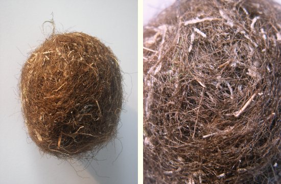 Dit exemplaar is dan ook een vrouwtje (zie het brede staartstuk aan de onderkant) en ze heeft nog enkele oranje eitjes bij zich. Op de scharen zijn haren te zien, waaraan de krab haar naam ontleent. Het schild is min of meer vierkant.