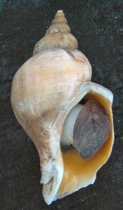 Inge van den Brink en Dick van Kuilenburg uit Amerongen vonden op 19 april j.l. een Wulk op het strand van Schiermonnikoog. Bij nader inzien bleek het dier (dood) nog in de schelp aanwezig. Ook het afsluitplaatje (operculum) was nog aanwezig. De schelp vertoonde een gat in een van de windingen. Wulken met daarin nog een dier worden slechts zeer zelden gevonden op Schiermonnikoog.