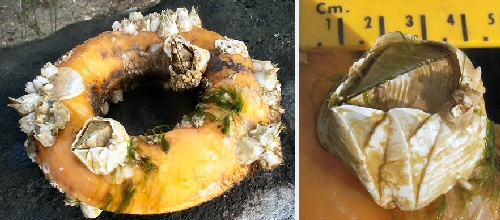 Deze grote zeepok spoelt slechts zeer zelden aan. De soort leeft in de noordelijke Atlantische en Stille Oceaan. Op 17 oktober vond ik bij paal 5 een kunststof ring, met daarop een groot aantal exemplaren van Chirona hameri. Op de ring bevindt zich verder een aantal exemplaren van een andere, kleine zeepok: de ritspok (Verruca stroemia (Müller, 1776)).