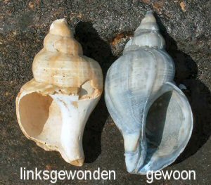 Op 18 mei 1969 vond Hanno van der Meulen de eerste linksgewonden wulk op Schiermonnikoog. Zelf vond ik op 7 september 2009 (40 jaar later!) het tweede linksgewonden exemplaar, in de vloedlijn bij paal 12. Deze genetische afwijking, waarbij de mondopening niet rechts- maar linksonder zit, is bij de wulk uiterst zeldzaam.
