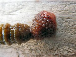Franse tap, rechts de zuigsnuit (proboscis)