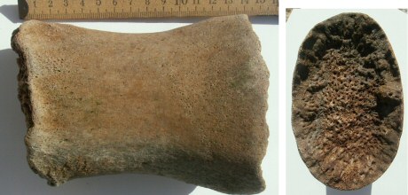 Op 5 januari vond ik in de buurt van paal 15 dit grote bot aan de vloedlijn. Het leek te gaan om een deel van een schouderblad. Na raadpleging van een deskundige, bleek het inderdaad een schouderblad van een wild paard te zijn. Wilde paarden kwamen hier gedurende het Pleistoceen ( de periode van de ijstijden) veel voor en op veel plaatsen in ons land en ook op de Noordzeebodem worden regelmatig botten van deze soort gevonden.